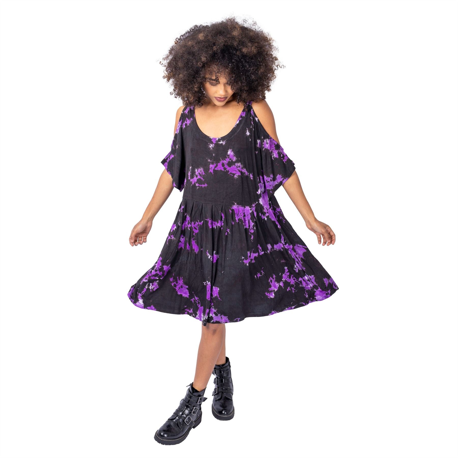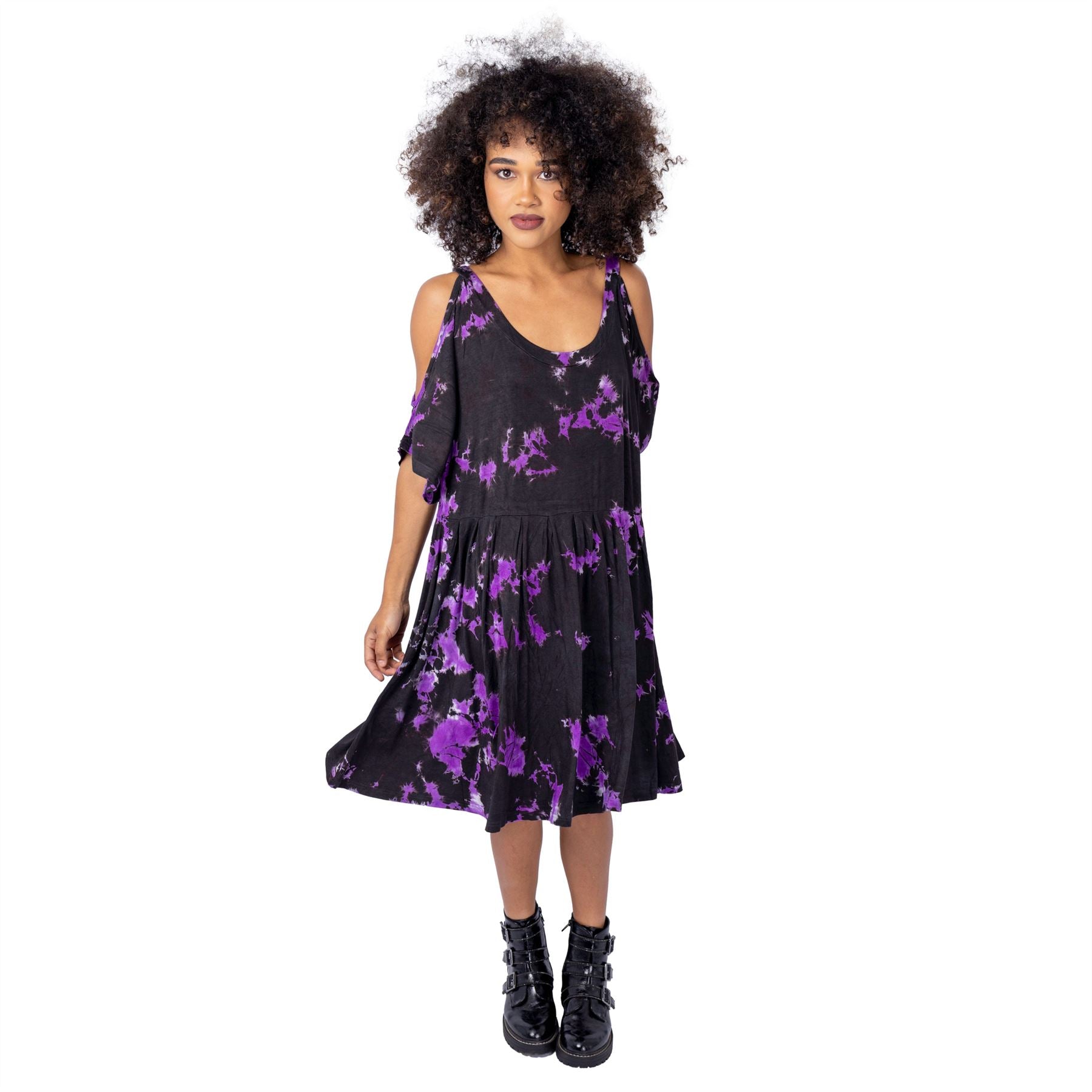 INNOCENT LIFESTYLE MAGARI DRESS - BLACK/PURPLE TIE DYE