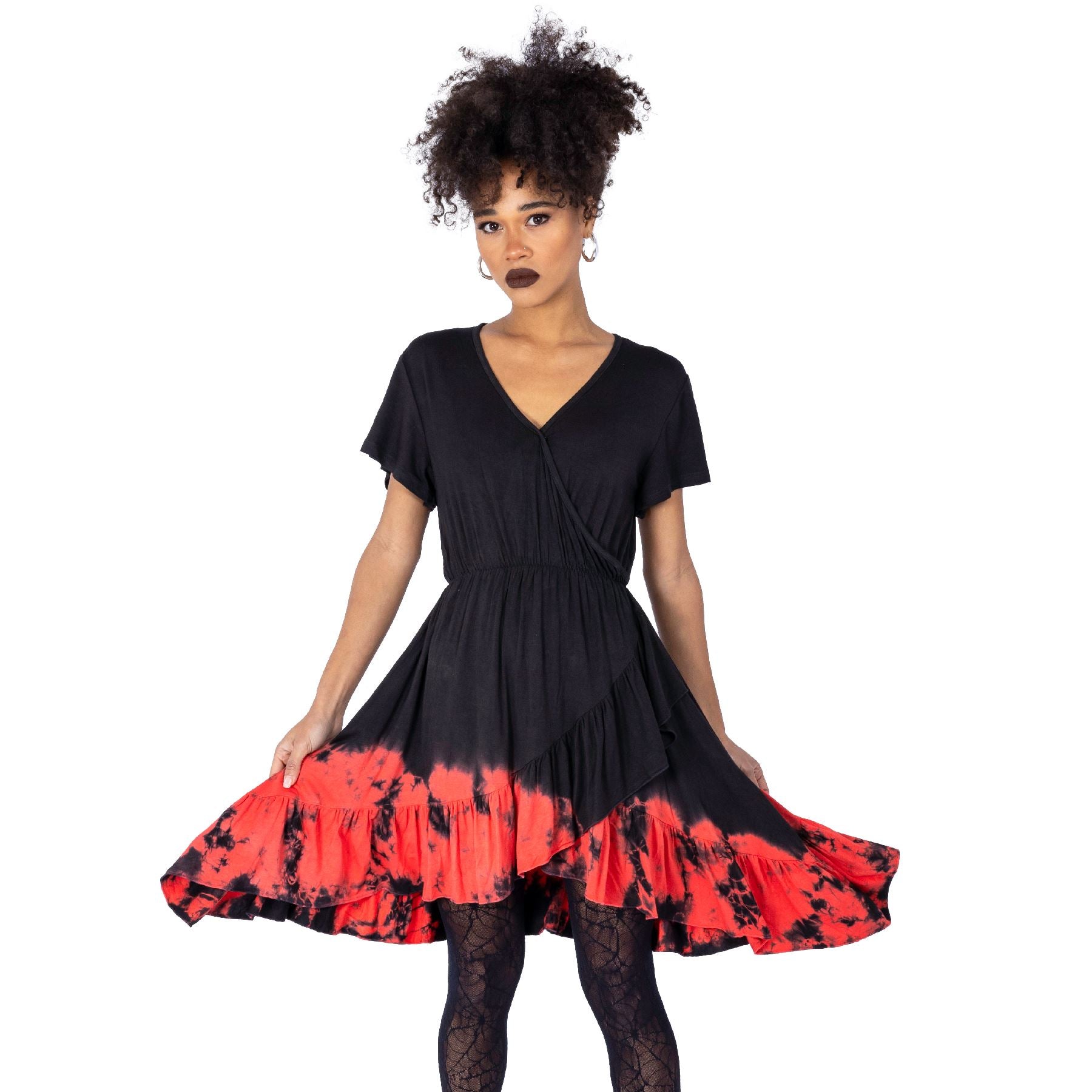 INNOCENT LIFESTYLE MEGAERA DRESS - BLACK/RED TIE DYE