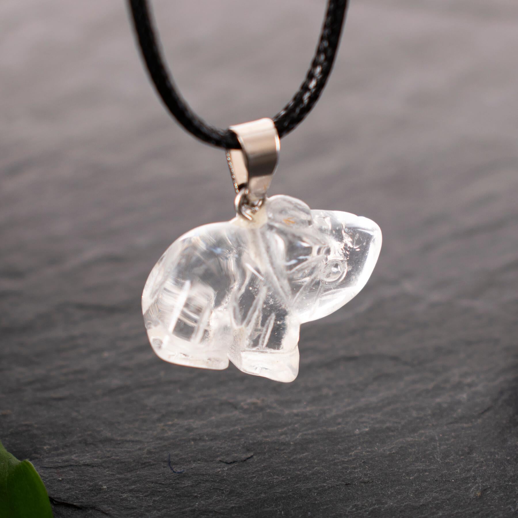 Clear Quartz Elephant Pendant Necklace