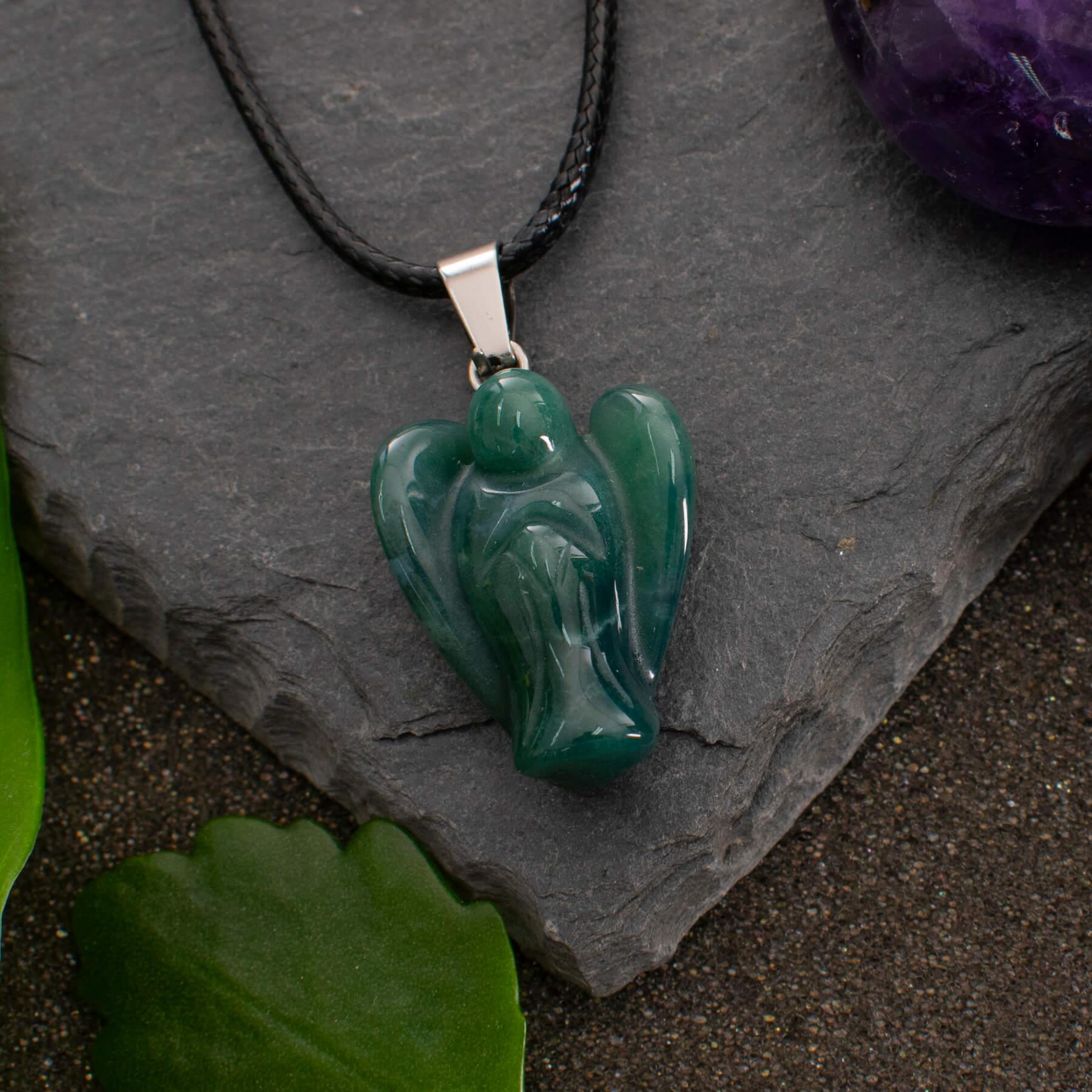 Dark Green Adventurine Angel Pendant Necklace