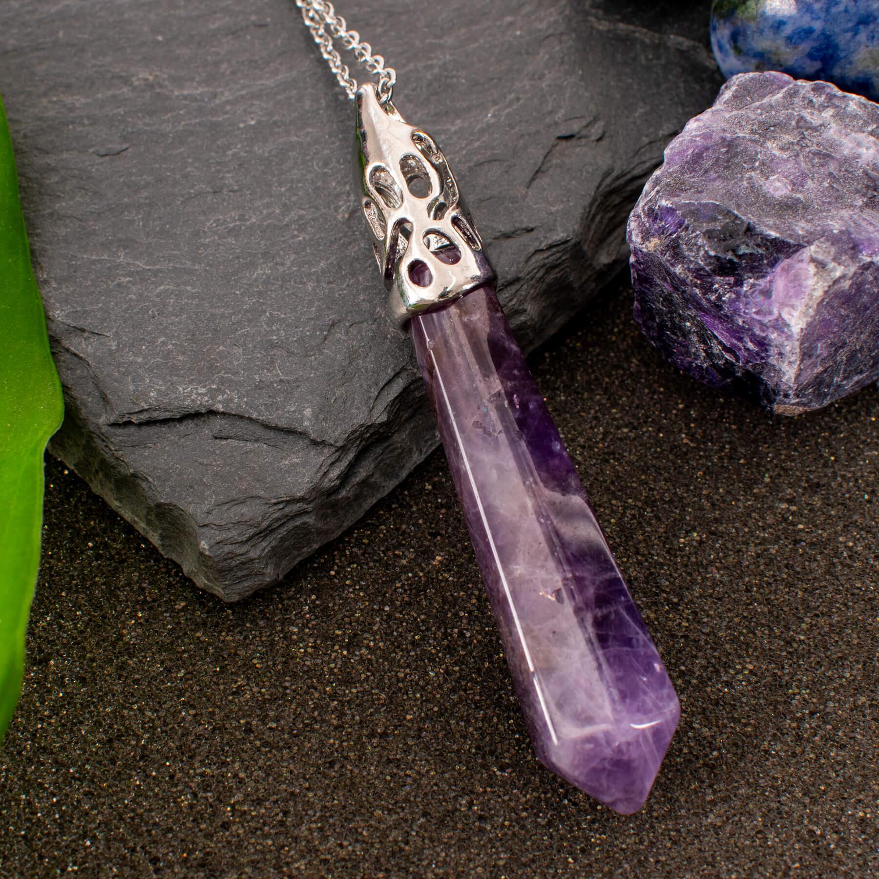 Long Amethyst Pendant Necklace