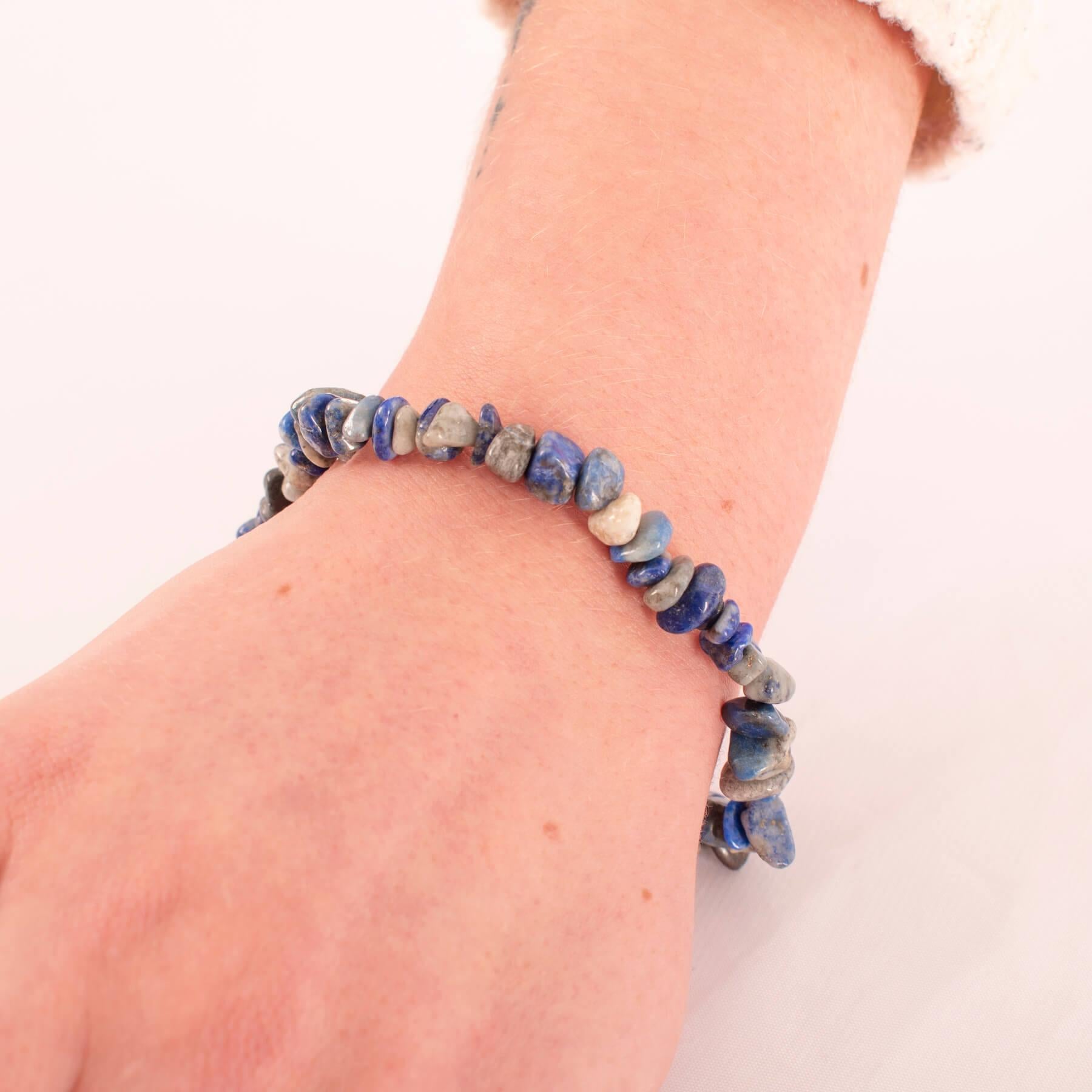 This Lapis Lazuli gemstone bracelet features rich, deep blue stones that symbolize wisdom, truth, and spiritual insight. Known for its calming energy, Lapis Lazuli helps enhance communication and self-awareness. The elegant design makes it a stunning accessory that adds a touch of sophistication while promoting inner peace and clarity. Perfect for those seeking to unlock their intuition and elevate their spiritual journey.