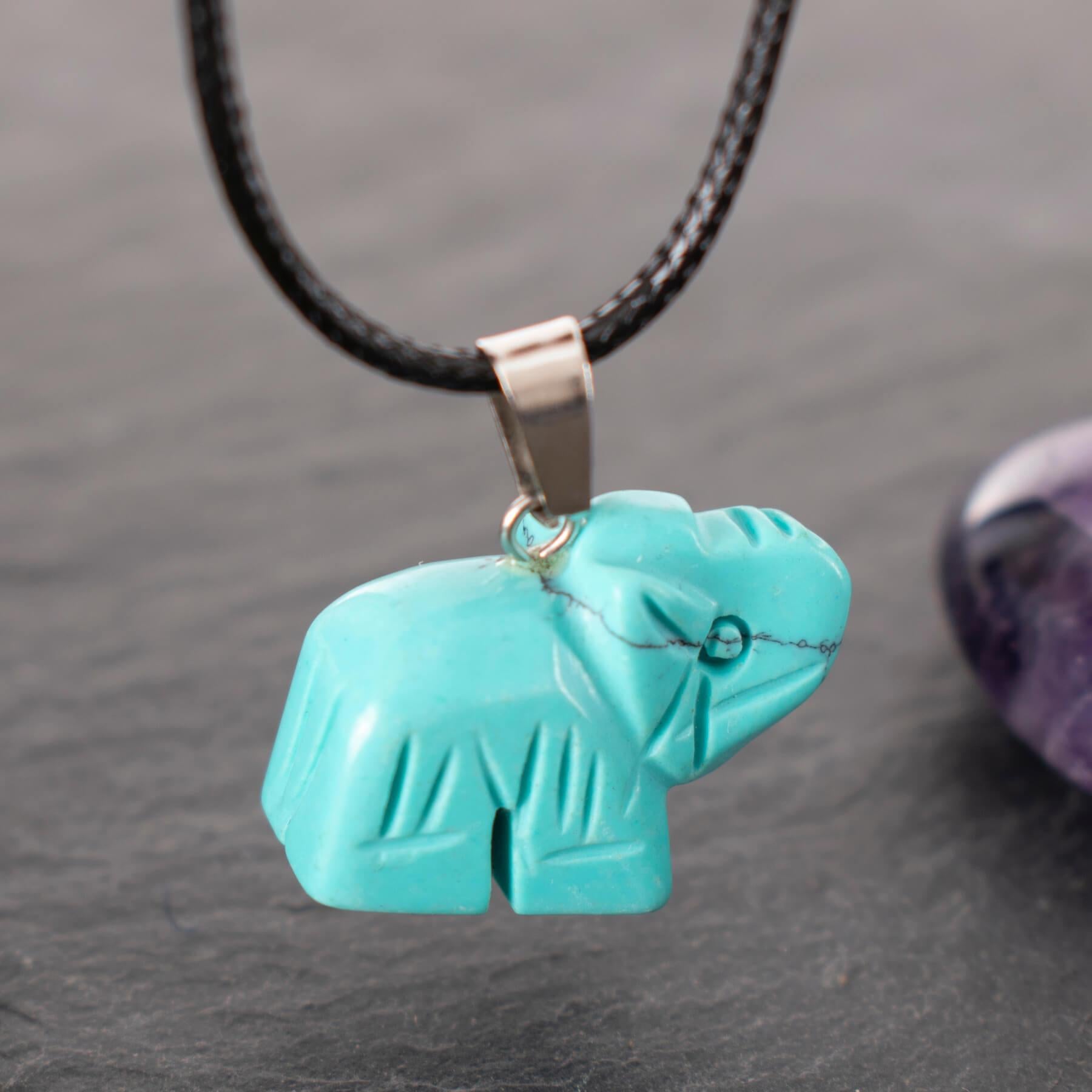 Reconstituted Tuquoise Elephant Pendant Necklace