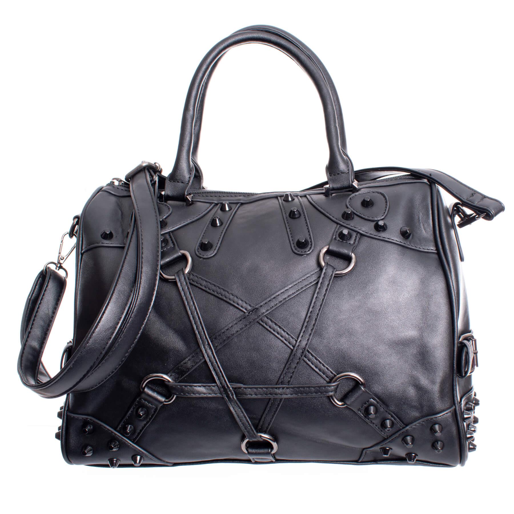 The Hexed Bag commands attention with its bold pentagram strap design and spiked accents, merging gothic symbolism with everyday practicality.