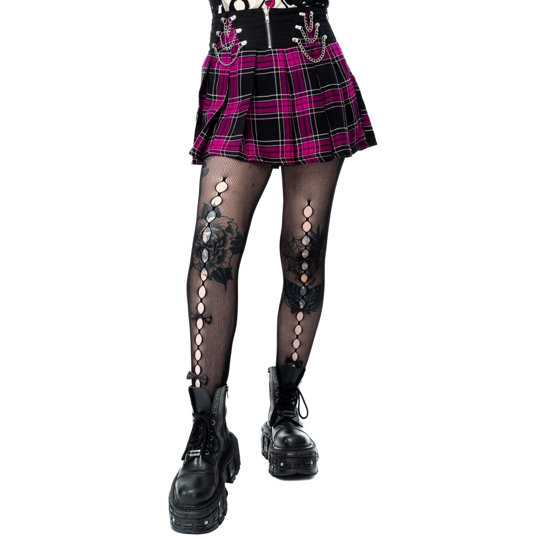 HEARTLESS NIXIE SKIRT - BLACK/DARK PINK CHECK
