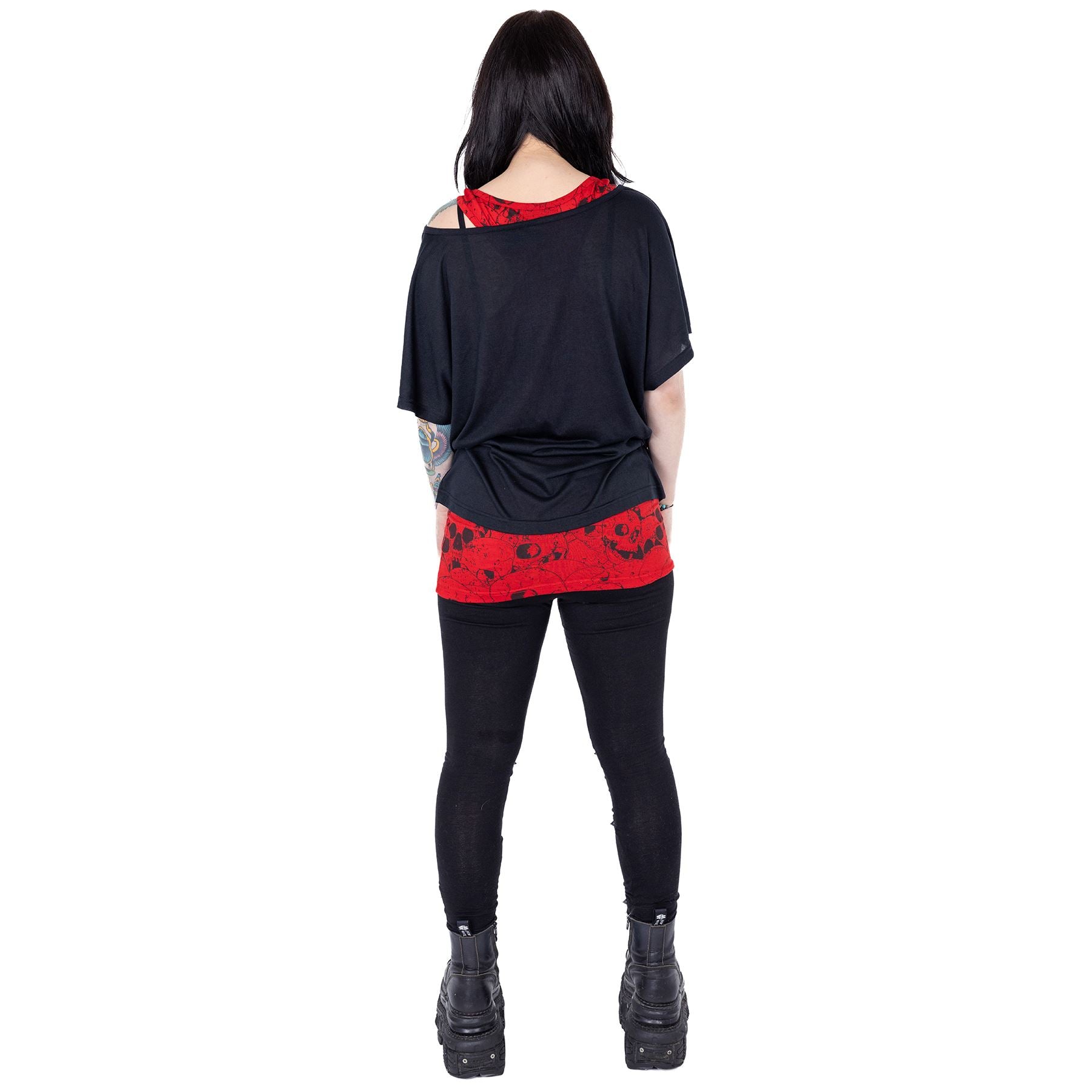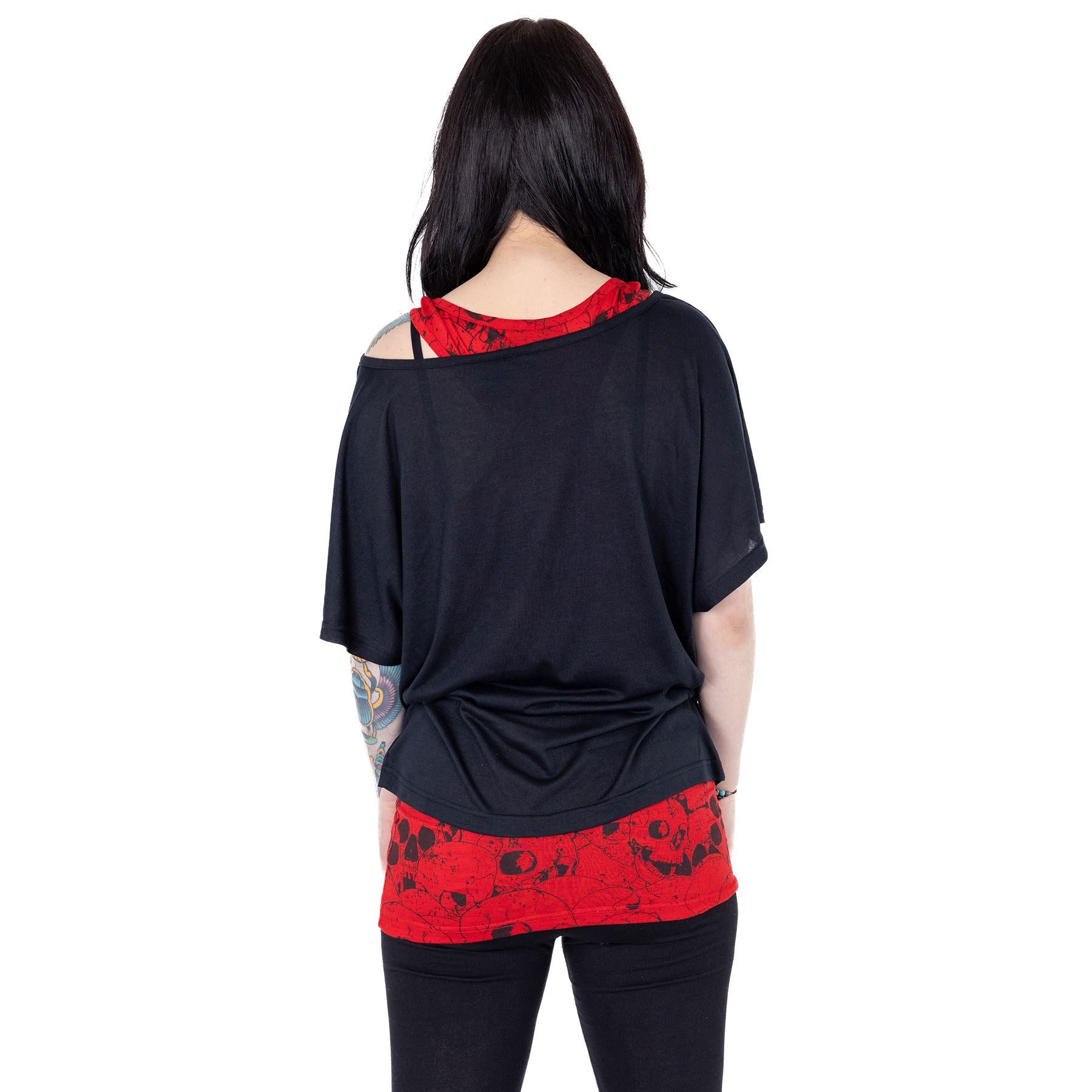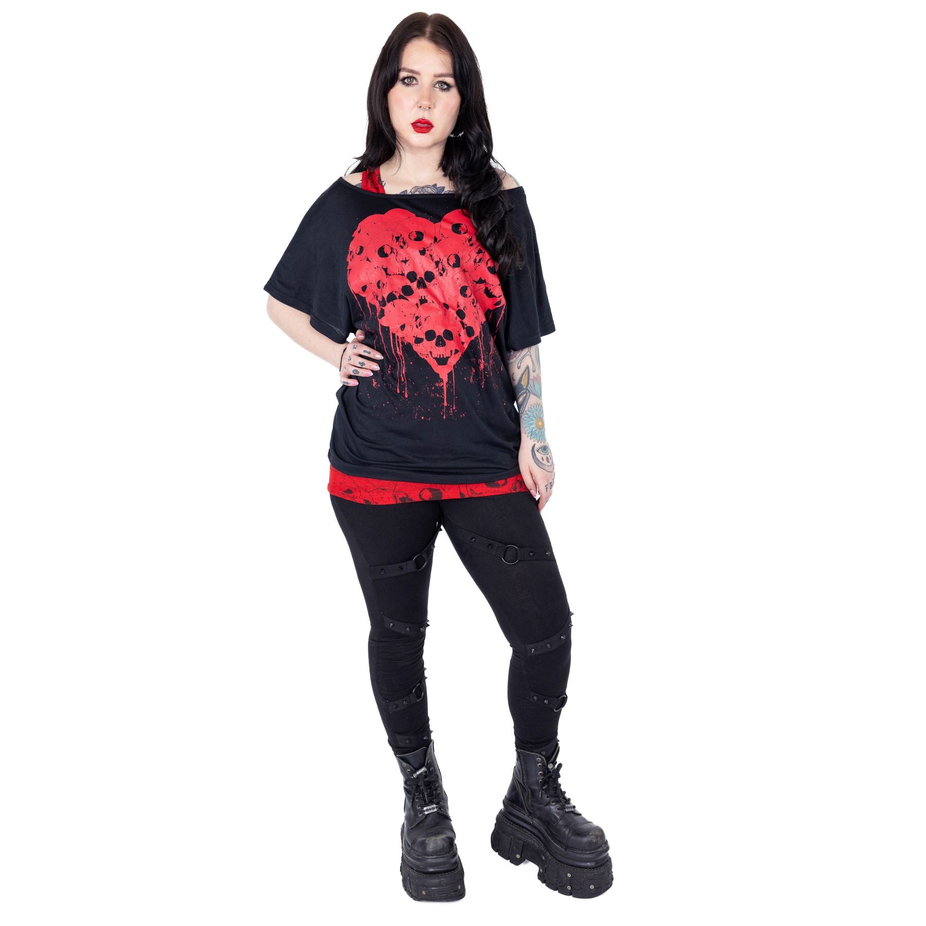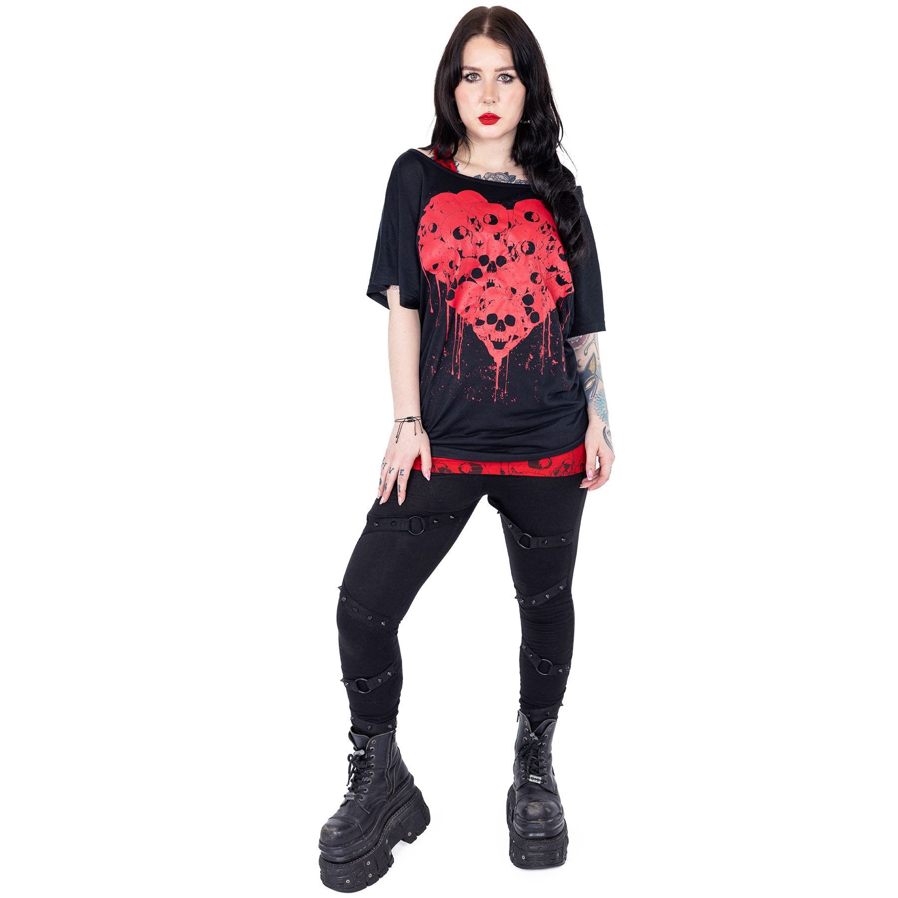 HEARTLESS SKULL HEART TOP - BLACK/RED