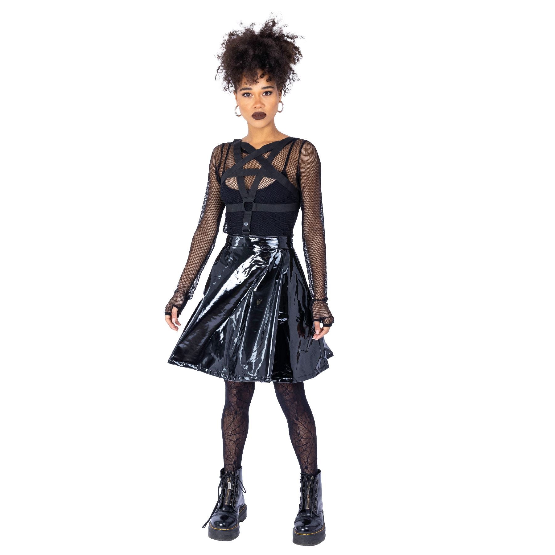 HEARTLESS HEXED SKIRT - BLACK PVC