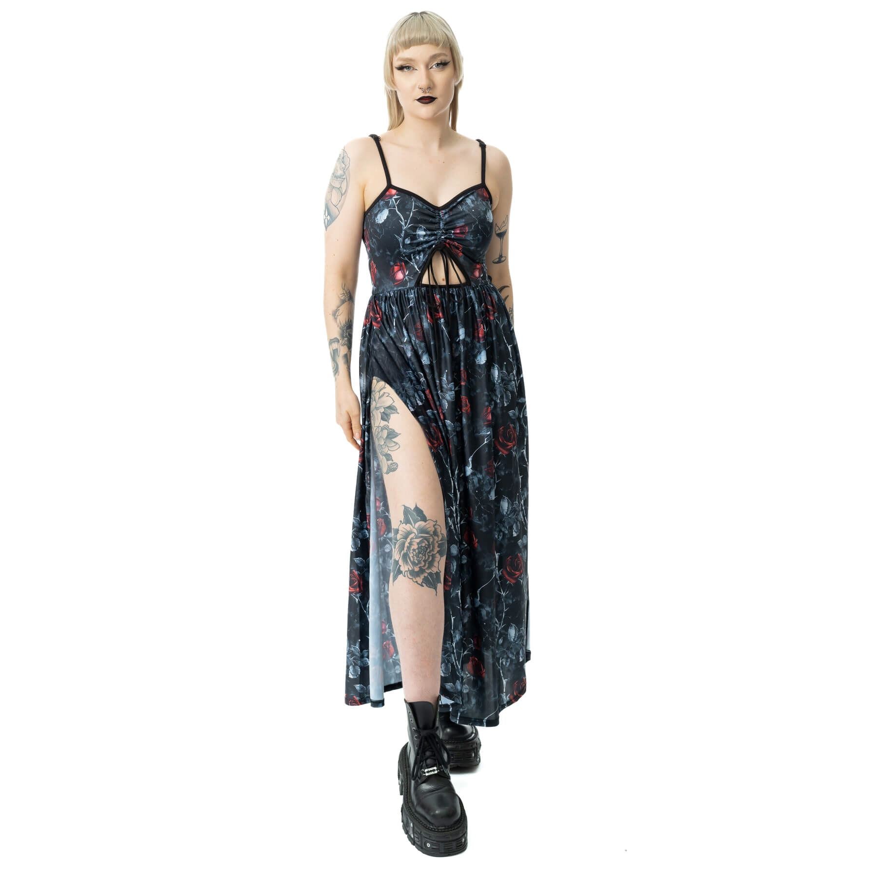 VIXXSIN GRAVEYARD BLOOM DRESS - BLACK