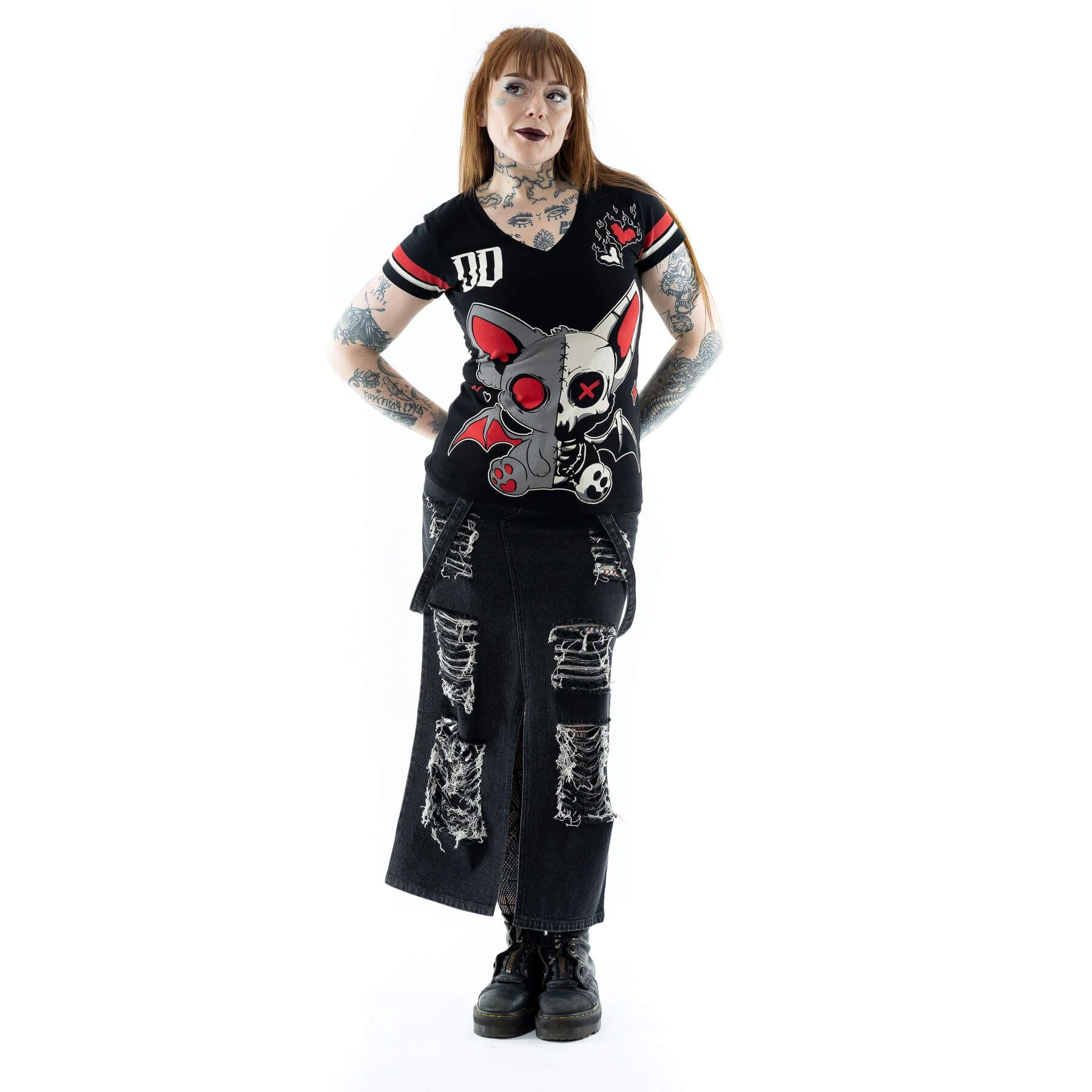 HEARTLESS TEAM DEAD INSIDE VARSITY T SHIRT - BLACK